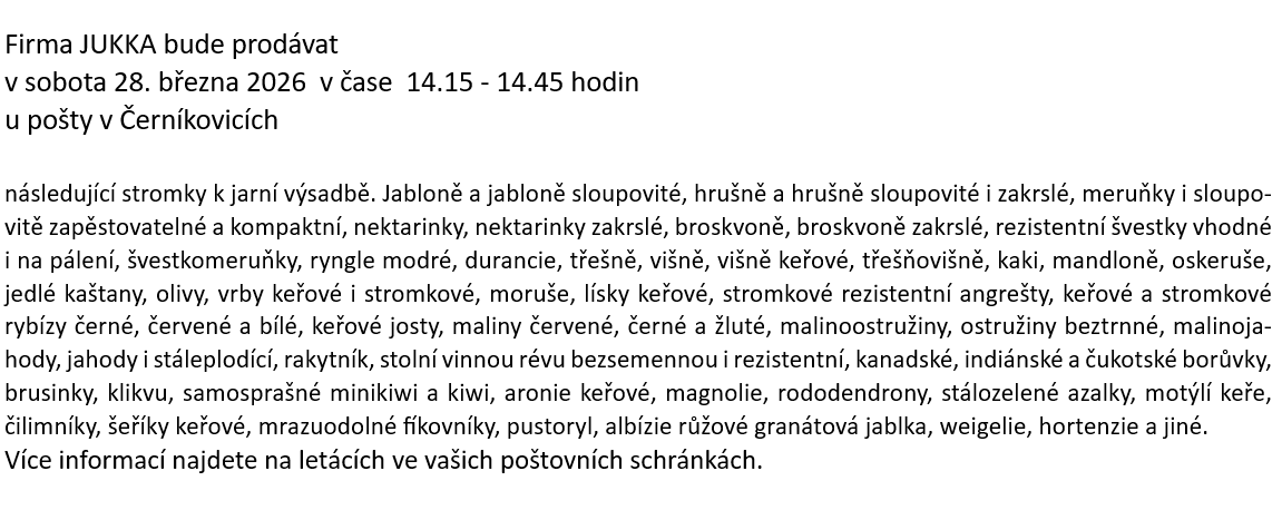 u pošty v Černíkovicích následující stromky k jarní výsadbě: