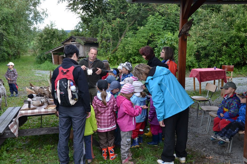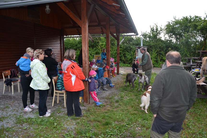 27.červen byl po roční pauze opět věnován dětem z MŠ. Na myslivecké chatě na Proudnici jsme pro ně připravili povídání o přírodě. Na ukázku jsme přivezli preparace ptáků, které mohou potkat v přírodě, mohli se podívat, jak vypadají kůže jezevce, lišky nebo psíka mývalovitého. Představili jsme jim různé druhy plemen loveckých psů a ukázali něco z jejich výcviku. Děti si mohly prohlédnout různé druhy vábniček, které se používají při lovu. A pro zapojení dětí do besedy jsme použili puzzle našich sov, které měli za úkol sestavit. Na závěr jsme si nechali jako překvapení živá mláďata kachny divoké, králika divokého a kuřátka bažanta. Vzhledem k pěknému počasí se akce libila nejen nám, ale zejména dětem. Určitě se těšíme na další pokračování.